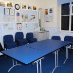 - Lounge / classroom with football table, TV, computer, short throw projector and whiteboard.