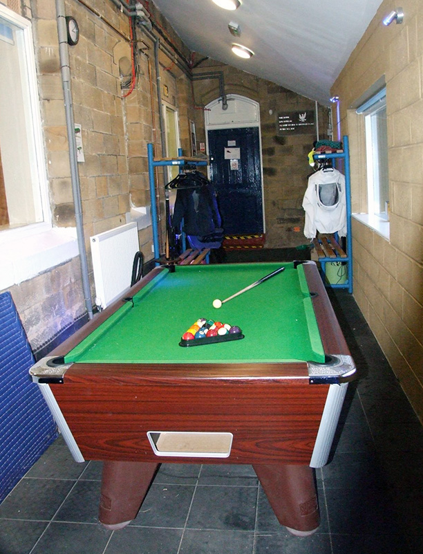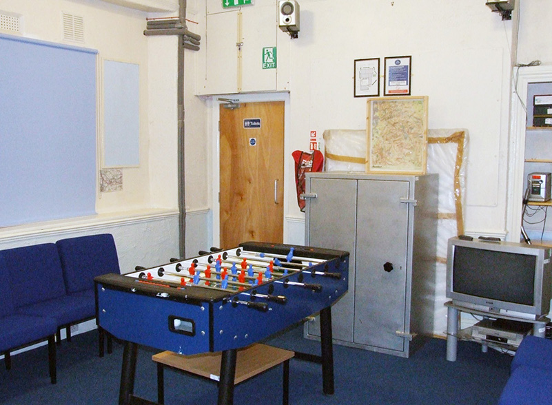 - Lounge / classroom with football table, TV, computer, short throw projector and whiteboard.